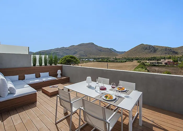Az 50 m²-es Penthouse Dalias Apartman Port de Pollença Port de Pollença régi részén található, és egy teraszt kínál, kilátással a hegyre. A 0 hálószobás apartman jakuzzit kínál a vendégek számára.
